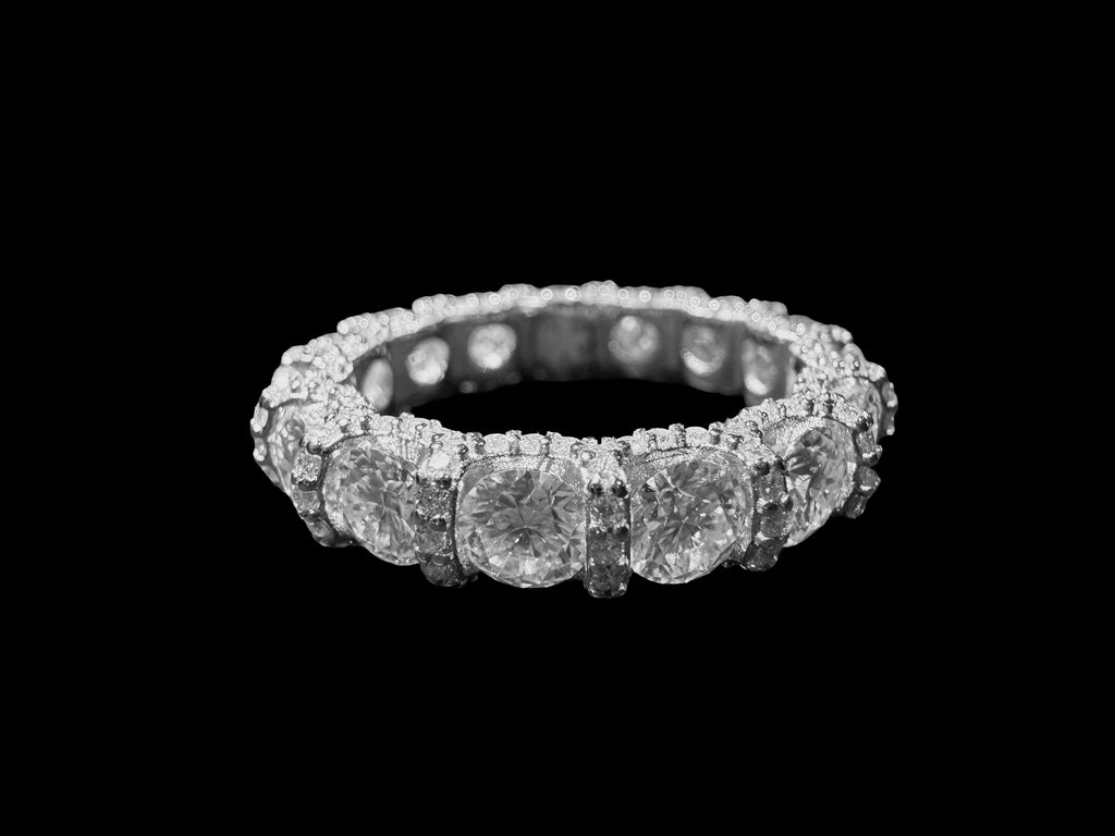 Endless sparkle, timeless promise. Our "Big Homie" 925 Silver Micro Pave Eternity Band is a luxurious ring that features a full circle of brilliant round cuts set in micro pave settings, set to capture light from every direction. More than jewellery, it's perfectly modern, perpetually dazzling and makes bold statement.